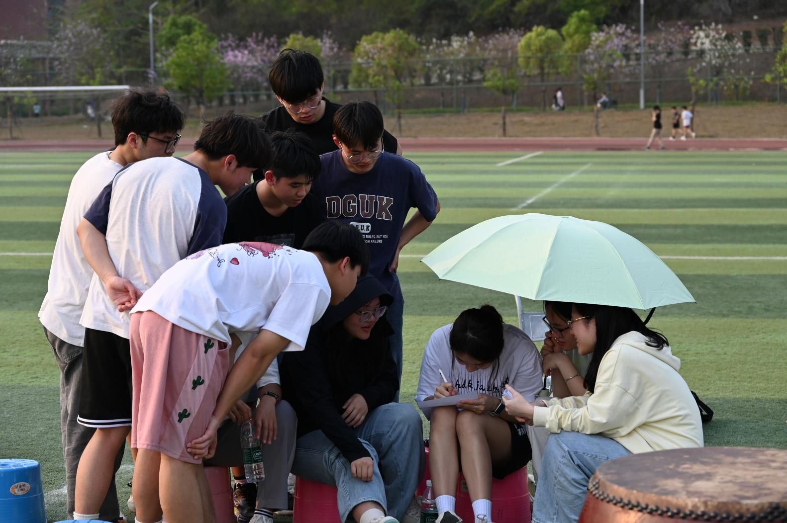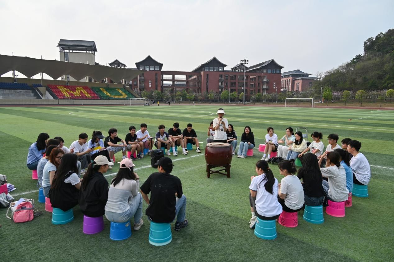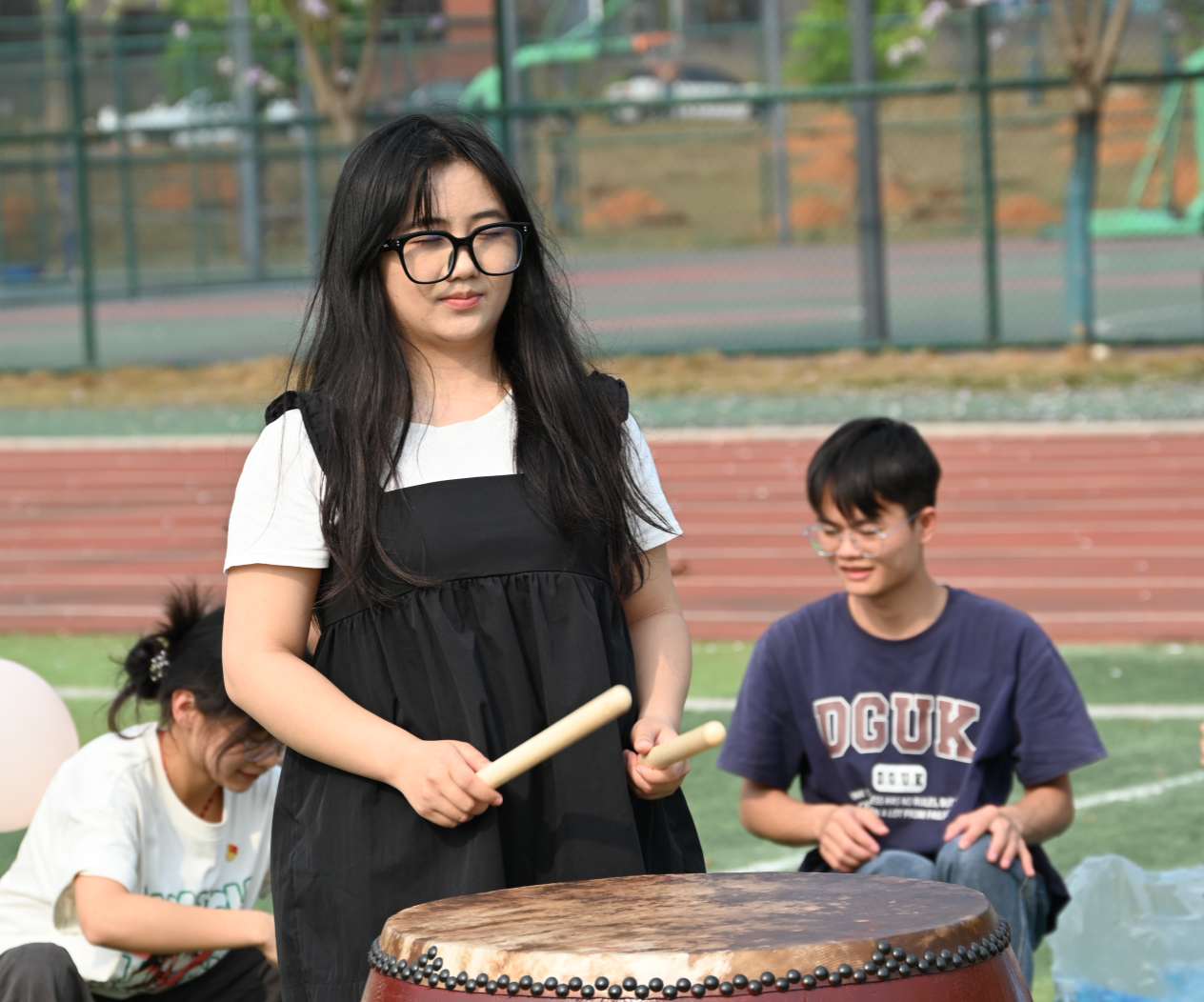 伴随着阵阵有力的鼓声,“击鼓传花”与“大风吹”游戏正式开场。游戏规则别具深意,鼓声停止时,持花者需结合自身成长经历,分享对“党员初心”的理解,或献唱红歌或分享趣事。操场上,鼓点声骤然响起,一只红色绒花在两院党员手中快速传递。鼓声戛然而止,材料与环境学院的刘建国手持绒花起身,略显紧张地朗诵了《青春》中的经典诗句:“以青春之我,创建青春之国家……”现场顿时响起热烈的掌声。刘建国评价道:“击鼓传花的随机性,就如同时代给予党员的考验。在‘鼓声骤停’时能否从容应答,考验的是我们日常思想积淀的深厚程度。”