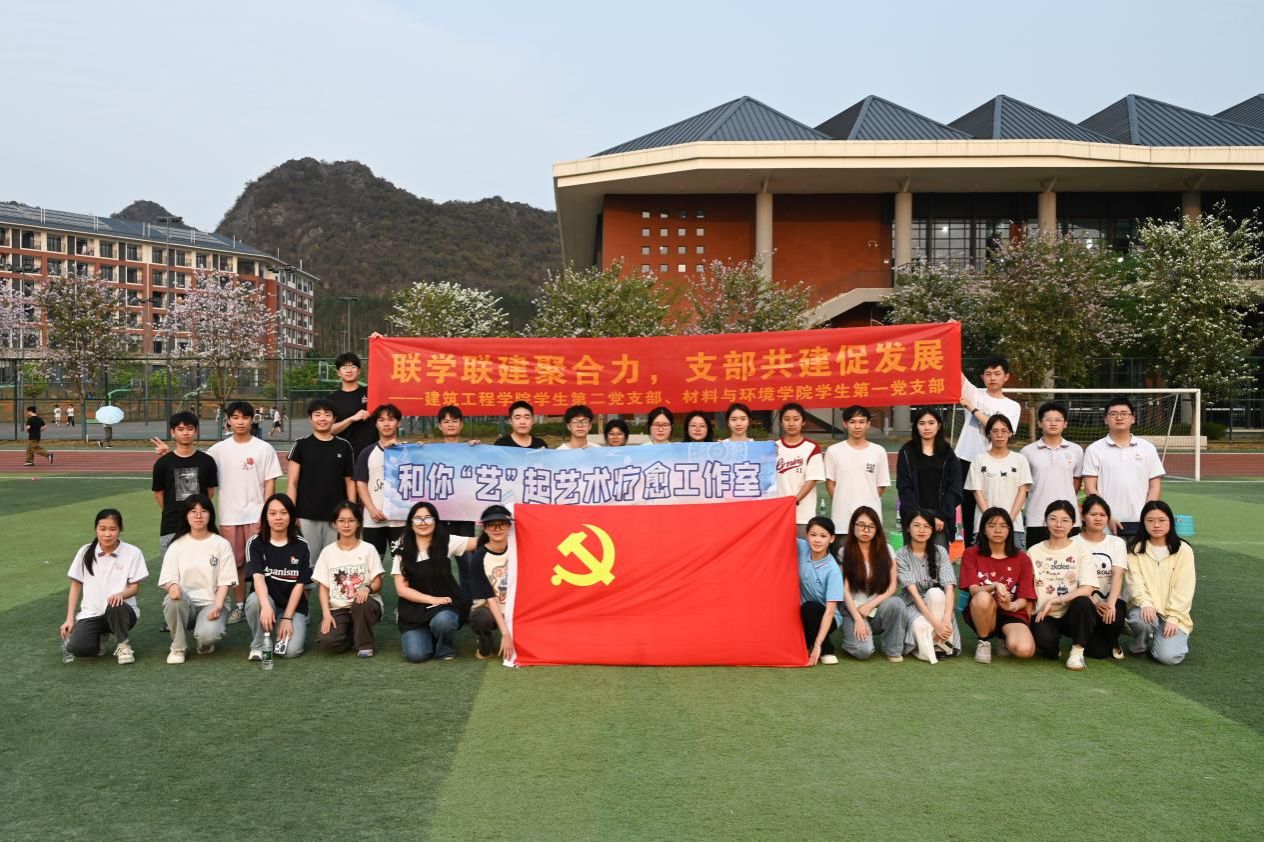 4月11日下午,betway必威西汉姆联第二学生党支部与材料与环境学院第一学生党支部于武鸣校区田径场联合举办一场以“筑梦同行,心暖情长”为主题的共建活动。本次活动在“和你艺起疗愈”工作室的专业指导下,创新地将艺术疗愈与素质拓展相融合,积极探索党建育人的全新模式。其目的在于打破学院间的壁垒,在协作过程中锤炼团队精神,进而推动学生心理健康发展,增强团体凝聚力。