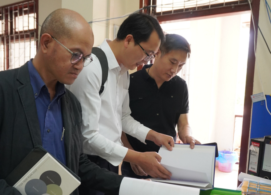 会后,双方教师共同走访了老挝国立大学建筑学、城乡规划、建筑技术和装饰设计等4个专业教研室,详细了解学科建设规划、师资队伍结构及科研教学情况。走访过程中,我方教师还特别关注了学生的日常学习场景,在教室、学生工作室与建筑学专业学生亲切交谈,观看学生的建筑设计竞赛、装饰设计作品等。