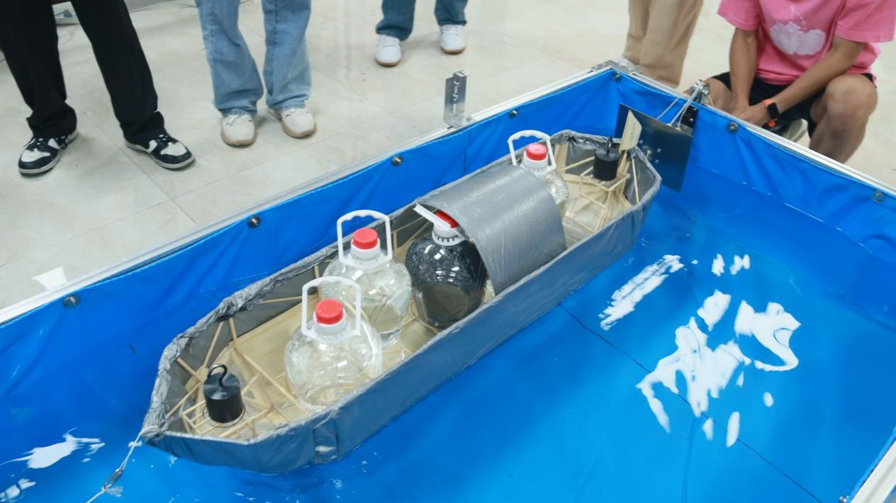 竞赛涵盖方案设计、模型制作与加载试验等环节,要求参赛队伍在规定时间内完成符合尺寸规范、兼具承载能力与防水性能的乌篷船模型。比赛中,各参赛队伍需通过三级加载测试,包括静态载重与动态航行抗撞击考验,全面展现结构设计的科学性与合理性。赛事严格遵循评分标准,从理论方案、模型制作、现场答辩及加载表现等维度综合评判,最终评选出一等奖2名、二等奖4名、三等奖4名,获奖队伍将代表学校参加区级竞赛。