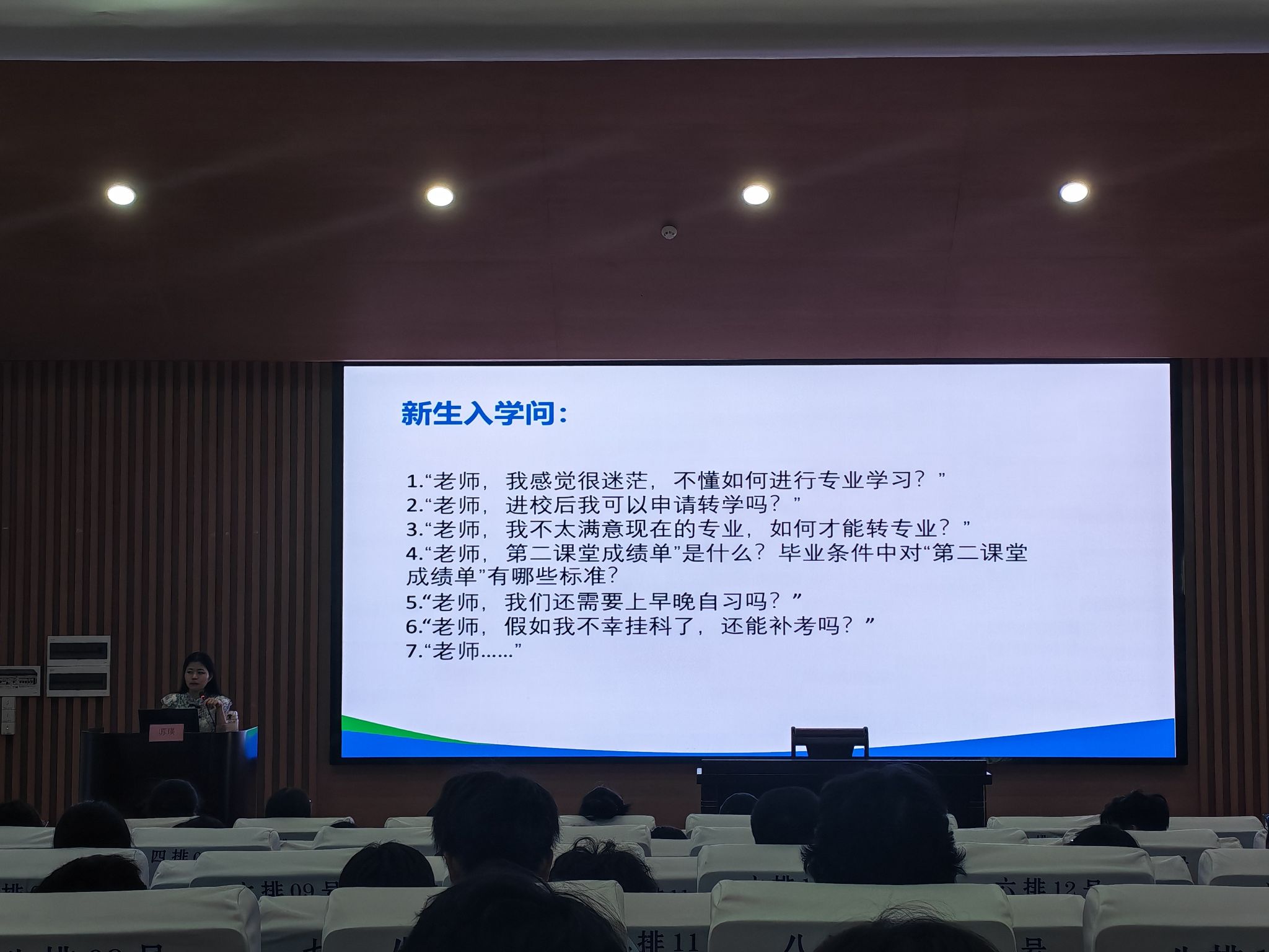 随后的新生入学适应教育则聚焦新生急难愁盼,进行精准答疑与指导。针对新生普遍关注的专业学习问题,老师们详细介绍了学院专业培养方案、课程体系设置及实践教学安排,分享了高效学习方法与科研创新路径;在生活适应方面,围绕宿舍管理、校园服务设施使用等内容提供实用建议;安全教育板块重点强调了人身安全、财产安全、网络安全等关键要点,通过典型案例敲响安全警钟;人际交往环节则引导新生学会沟通协作,快速融入集体生活。