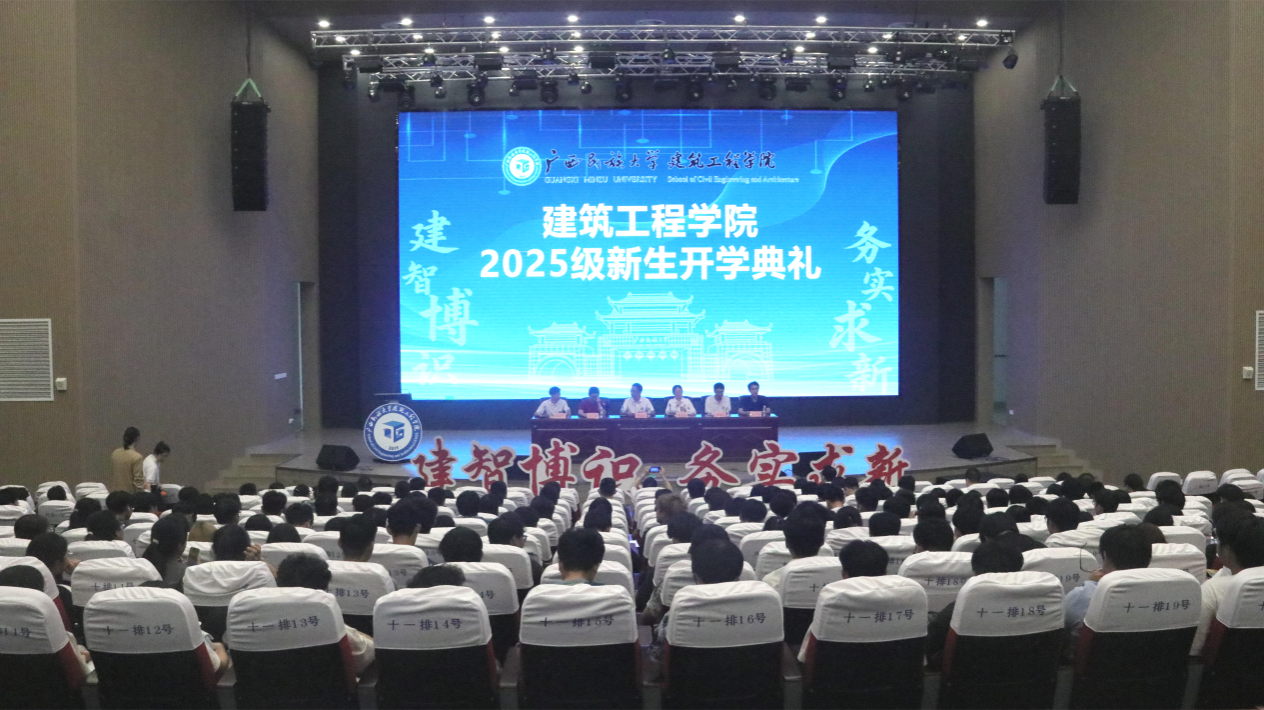 2025年9月28日下午,广西民族大学betway必威西汉姆联2025级新生开学典礼在武鸣校区小礼堂举行。学院全体教师以及土木工程、建筑学、工程管理三个专业全体新生共同参加。