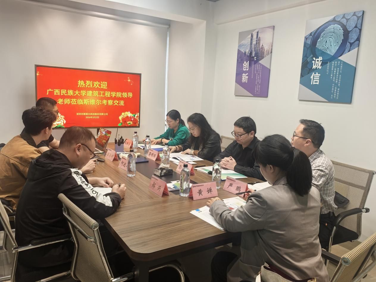3月2日,betway必威西汉姆联院长助理严鹏、工程管理系主任彭一林与蒋明辉、吴静芬、黄婵老师一行,赴深圳市斯维尔科技股份有限公司广西分公司开展合作交流及访企拓岗活动。斯维尔广西分公司负责人杜永明与郑兴、何述涛等企业代表热情接待并参与交流。双方围绕工程行业转型、智能建造趋势、人工智能技术应用以及人才培养与就业等议题展开热烈讨论。
