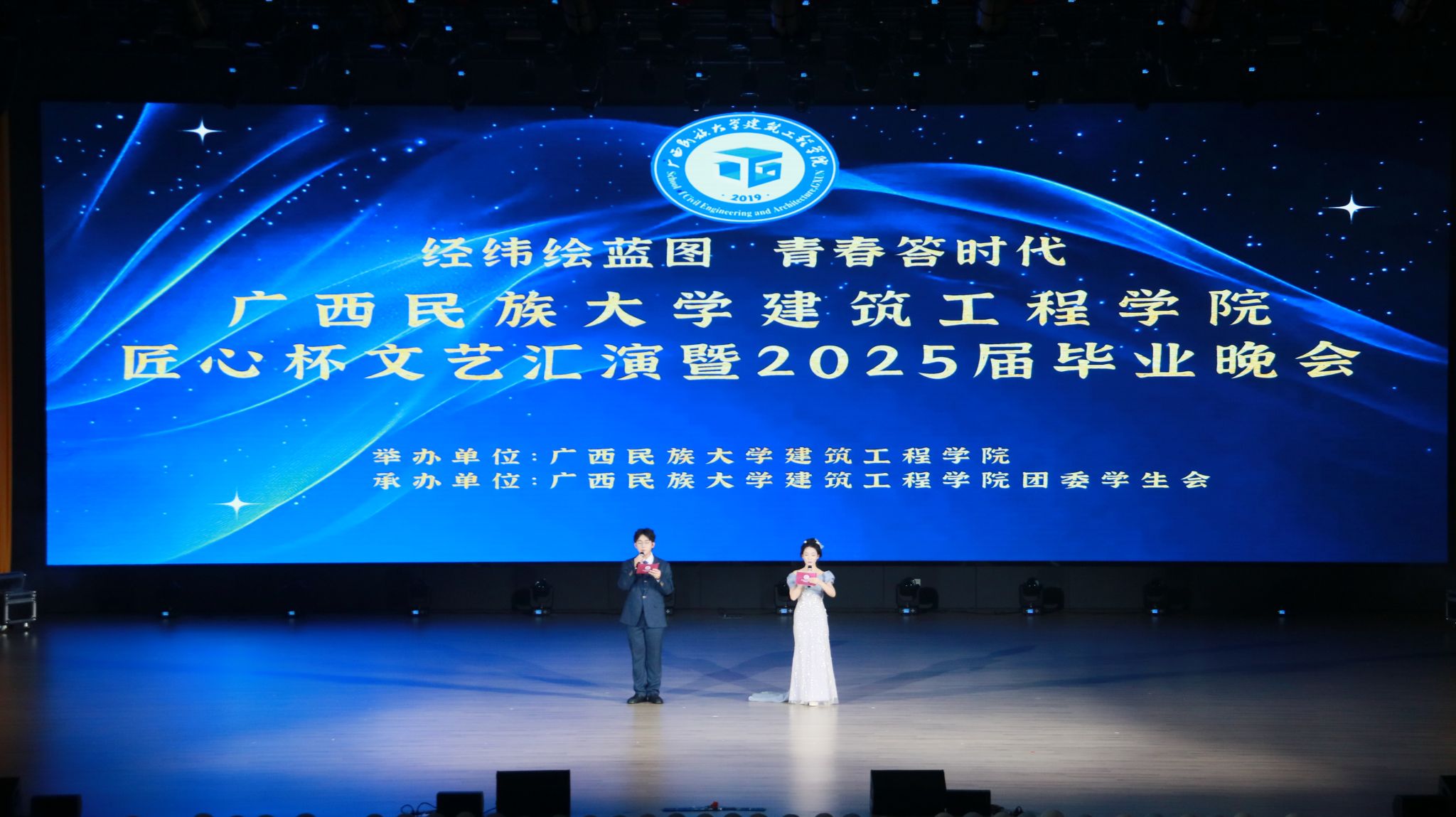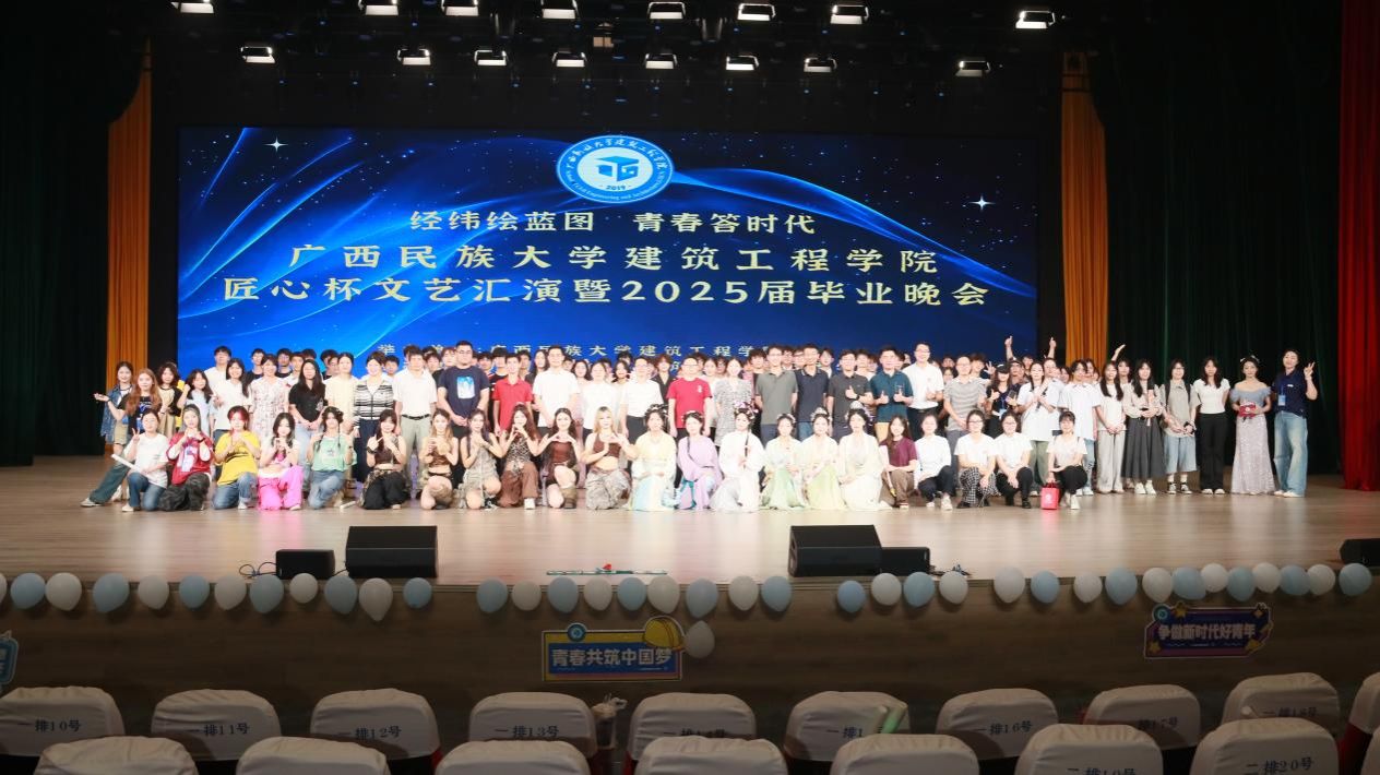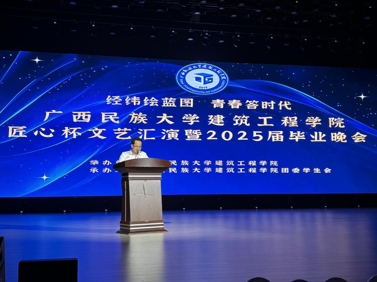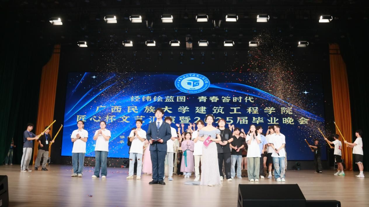 5月18日晚,广西民族大学betway必威西汉姆联“经纬绘蓝图·青春答时代”匠心杯文艺汇演暨毕业晚会在武鸣校区大礼堂举行。本次晚会由betway必威西汉姆联主办、团委学生会承办,通过歌舞、朗诵、小品等多种形式,为毕业生送上了一场充满温情与活力的告别仪式。全院师生及校友代表齐聚一堂,共同见证这一难忘时刻。