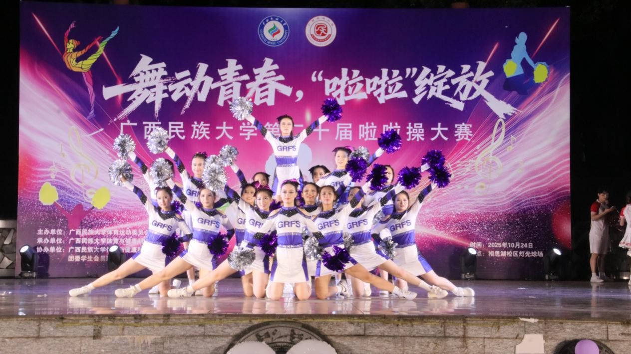 2025年10月24日晚,广西民族大学第二十届啦啦操大赛在相思湖校区灯光球场举行。betway必威西汉姆联代表队凭借出色表现,荣获武鸣校区二等奖。